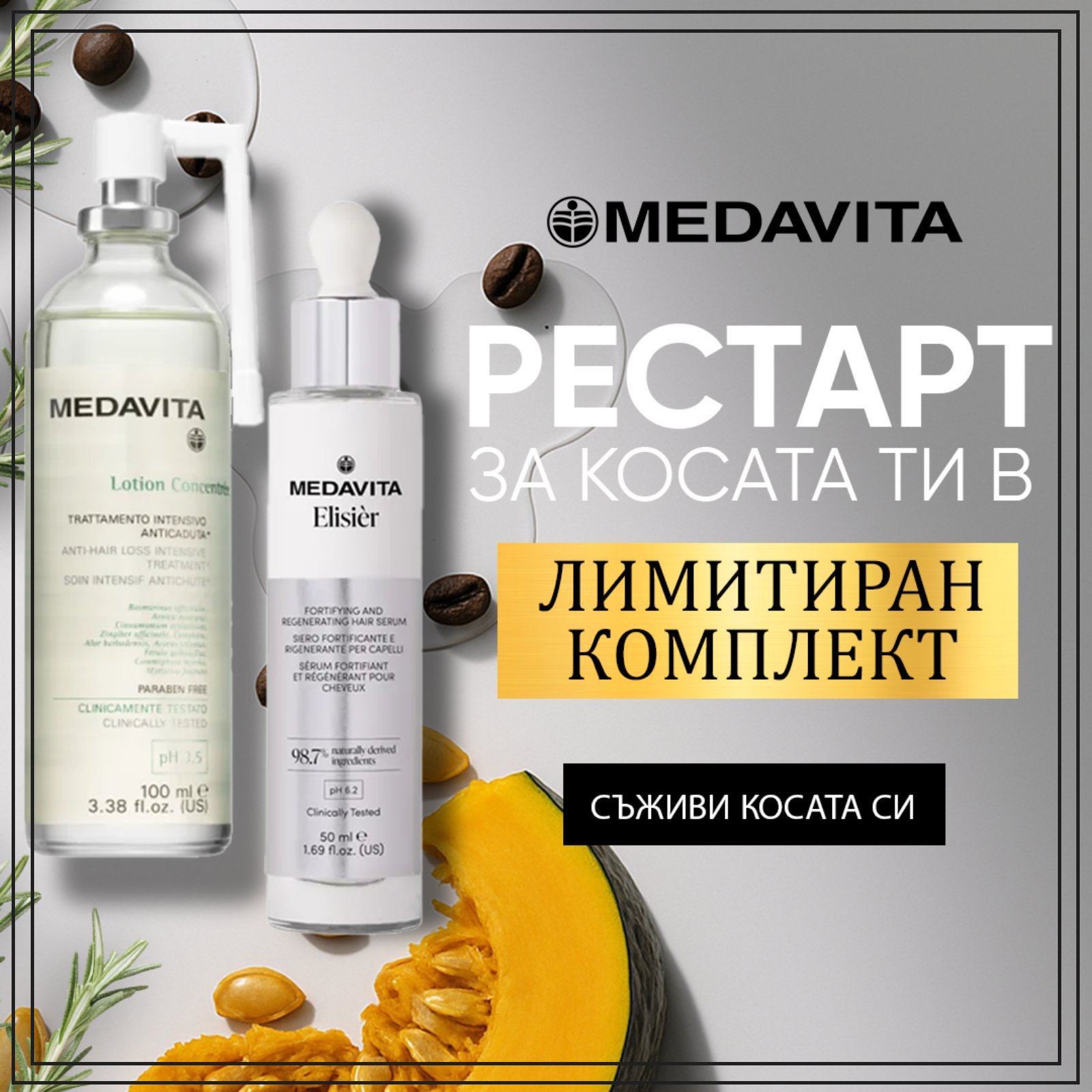 Original price was: 196.00лв. / 100.21 €.156.80лв. / 80.17 € Текущата цена е: 156.80лв. / 80.17 €.MEDAVITA Сет за лесно разресване на косата
